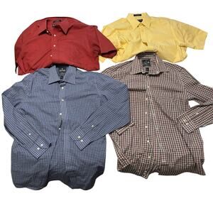 Lot 4 Stafford Travel Dress Shirt Men 15.5 34/35 Check Button Up Long Short -BUB