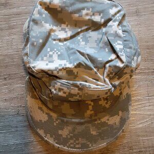 Lot: 4 US Army Digi Camo Caps- Used-Straight in from the Field- Dirty but Strong; Artillery Unit * It seems that all of the stitching is holding strong and intact * Velcro / Hook & Loop Closure is also holding strong * But Be Warned - My boys wore these in the field, and are very dirty - maybe strained * Functionally, they're great * Camouflage * Military * All the brims are in excellent shape, and caps will ship to you in the tucked-in manner in order to protect the brims during shipping *