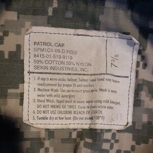 *Size 7 1/8 * Patrol Cap, SPM-1C1-09-D-N002 * "M" in ink pen * 50% Cotton * Sekri Industries *