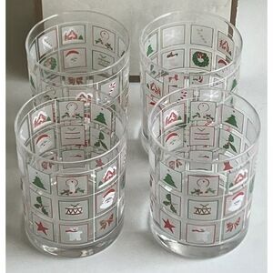 Lot 4! Vintage Culver MCM Christmas Potpourri Low Ball 14 oz Glass Glasses