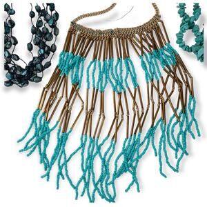 Lot 4 boho style multistrand necklaces glass beads shell turquoise
