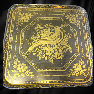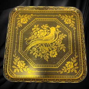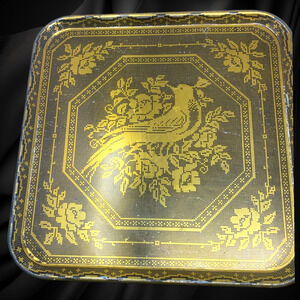 Lot 4 x Vintage Peacock Bird Design Gold Metal Tin Serving Trays 10.5 x 10.5 MCM