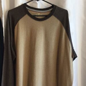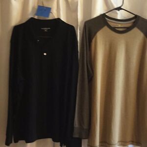 2 NWOT shivery with long sleeves. One is a polo type with collar in black, other is a t shirt type in 2 tone brown. Both are size extra large.