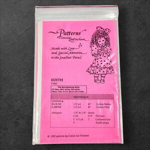 Heres a fun bundle for doll makers and collectors! This lot includes five original 1990s sewing patterns by Connie Lee Finchum, all uncut and complete in original packaging. Sizes range from 16 to 24 dolls. Perfect for adding vintage style to your collection or creating outfits for display dolls.