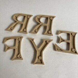Lot 5 Gerber Industries Plastic Molded Letters Y E R F Faux Wood Look