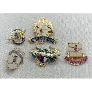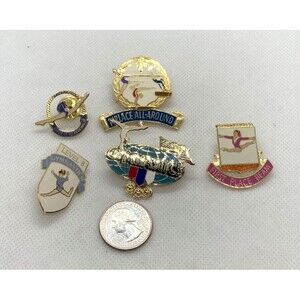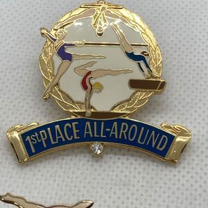 Lot 5 Gold Tone Gymnastics Pin Brooch Regionals Beam 1st Place All-Around 2002