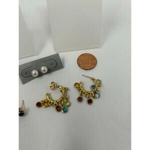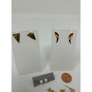 Lot 5 Vintage Stud Earrings Costume Jewelry Tiny Art Deco Boho Gold Tone