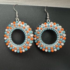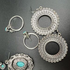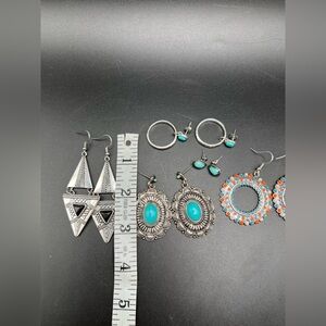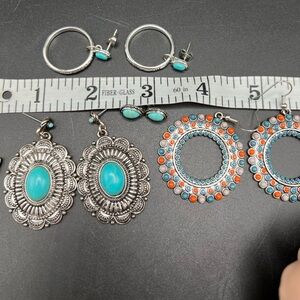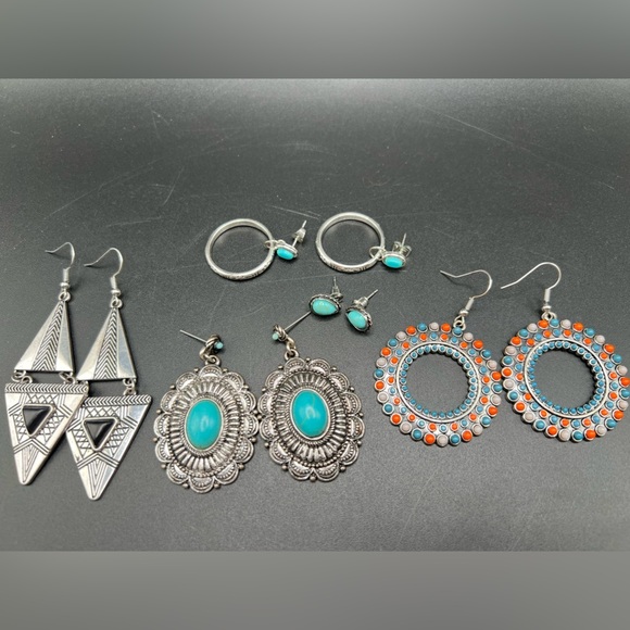 Lot 5 pairs western southwestern style earrings silver tone turquoise color