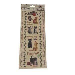 Lot 6 Cat Scrapbook Sticker Sheets Mixed Brands Cardstock Embossed Feline Craft