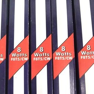 Lot (6) Satco S1904 F8T5/CW 2 Pin 8W T5 5000 Hr Cool White Fluorescent 12" Tube. New in package.