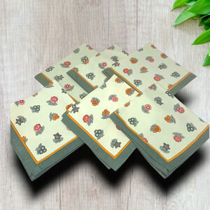 Lot 6 x Williams Sonoma Floral Napkins Square 20” Green Border Botanical