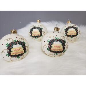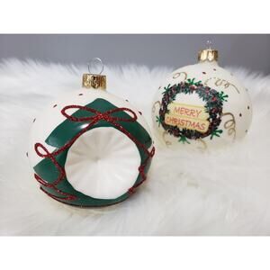 Lot 7 VITBIS Christmas Ornaments glitter Glass Round 3" Indent milk tree painted