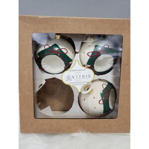 Lot 7 VITBIS Christmas Ornaments White Glass Round 3" Indent.