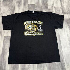 This collection of nine men's XL Green Bay Packers t-shirts showcases designs from Super Bowl XLV, NFC North Champions, and other iconic moments. Ideal for fans.