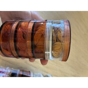Thread is new, the container is used and has some cracks. Still in good condition and can use and screw together. Lots of colors. Look at pictures