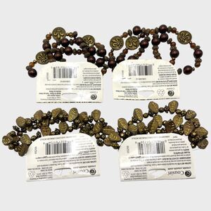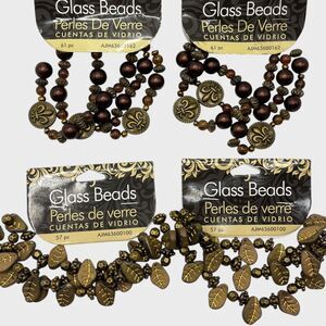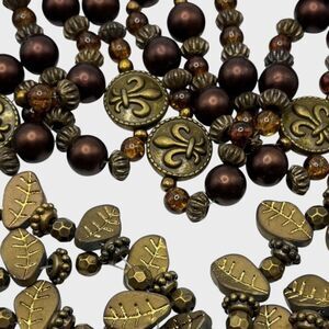Lot Glass Beads Brown Bronze Leaves Fleur De Lis Metallic Jewelry Craft Antiqued