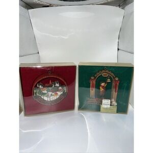 This lot features two beautiful ornaments from the Tree Trimmers Collection by Hallmark. These vintage ornaments are perfect for adding a festive touch to your Christmas tree. The multicolor design and intricate details make them a great addition to any collection. The set includes one ornament from 1976 and is sure to bring joy to your holiday season. Add these collectibles to your holiday decor today!