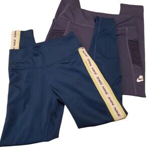 Lot NIKE Training Leggings Women's X-SMALL Teal Exercise Pants Logo Stripe Blue