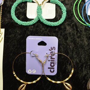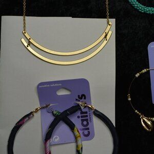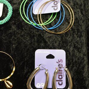 This lot includes 8 pairs of large Sensitive Solutions hoop earrings from Claire's/Icing, a necklace and a ring (size 7). Buyer will receive the items shown in the photos. MSRP $83.00!! Please let me know if you have any questions!