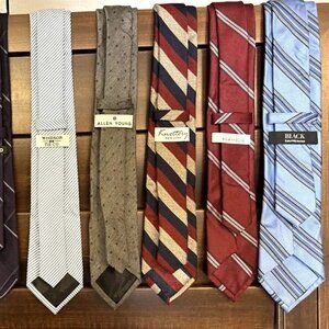 Each tie includes a stylish logo accent and a preppy theme, making them a great addition to any outfit. Some of These vintage ties are handmade and perfect for any occasion, whether it's a formal event or a day at the office. Add a touch of money and abstract design to your wardrobe with these designer ties.