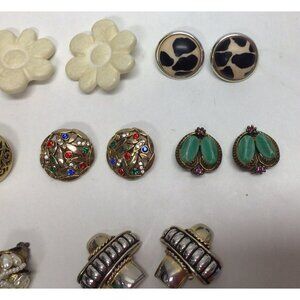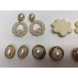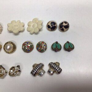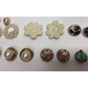 Lot Of 10 Vintage Clip On Earrings Beaded Rhinestone Pearl