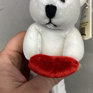 Lot Of 11 Unipak Velveteen Plush Valentines Bears With Hearts - NWT. Msrp is $3.95 per bear. One bear has a small stain on one of its arms. These measure 5.5” long.