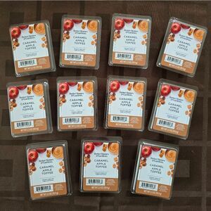 The product is a Caramel Apple Toffee flavor wax melts by Better Homes & Gardens, consisting of 11 packs with 2.5 oz each. The wax melts are in the shape of cakes, specifically 6 cubes. The wax melts are scented with Assorted Scent, perfect for creating a cozy autumn and winter atmosphere in your home. Made in the United States, these wax melts are part of the Autumn Sweets and Winter theme from Better Homes & Gardens