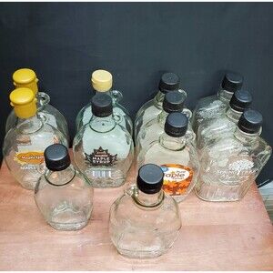 Lot Of 12 Clean Empty Maple Syrup Bottles Clear Glass