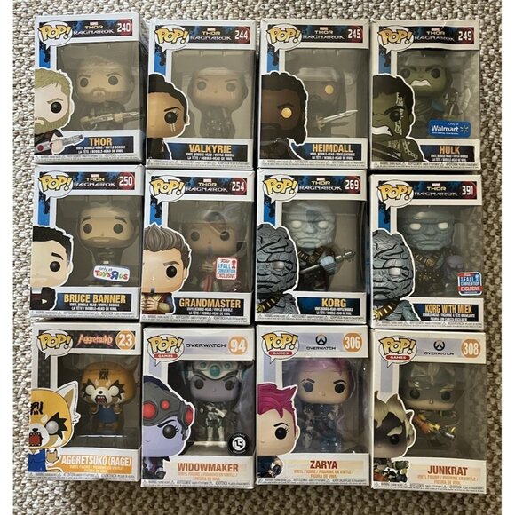 This lot includes 12 Funko Pop! vinyl figures, 8 of which are from the Funko Pop! line and 4 of which are from the Funko Pop! Games line. These 6-inch figures feature exclusive designs from the Marvel franchise, specifically from the Avengers Assemble series.