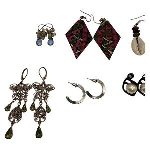 This collection of vintage earrings showcases a diverse mix of styles and materials, offering a touch of retro flair. With options ranging from intricate metalwork to shell and bead embellishments, these earrings are a testament to past fashion trends, providing a unique glimpse into bygone eras.