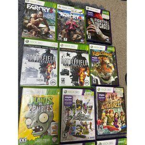 A diverse collection of 16 Xbox 360 games, including popular titles like Far Cry, Dance Central, and Kinect Adventures. Includes Kinect-enabled options.