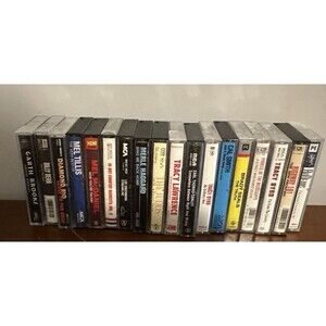 This lot of 18 country cassette tapes features various artists and records from the 1970s to the 1990s. The tapes come in standard jewel cases with multicolor designs, showcasing a collection of country music from different artists and record labels. Each cassette is a piece of music history from the United States, perfect for music enthusiasts looking to add some classic country tunes to their collection. Artists include Garth Brooks, Billy Dean, Cal Smith, Lee Greenwood, Tracy Byrd, Tracy Lawrence and many more.