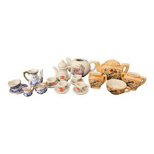 Lot Of 19 Pieces Vintage Miniature Mini Porcelain Floral Tea Sets Collectibles