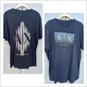 Lot Of 2 Armani Exchange A|X Mens Crew Neck T-Shirt Sz L City Skyline & AE Logo