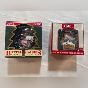 Lot Of 2 Coca Cola Christmas Ornaments 2003 Pearlescent Porcelain Bottle Works