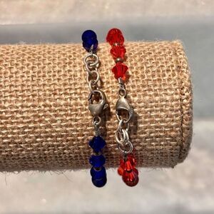 Lot Of 2 Crystal Sterling Silver Chain Adjustable Beaded Bracelet Blue Orange OS
