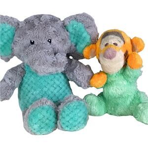Lot Of 2 Disney Tigger And Gray Elephant Baby Plush Rattle Crinkle Stuffed Toy