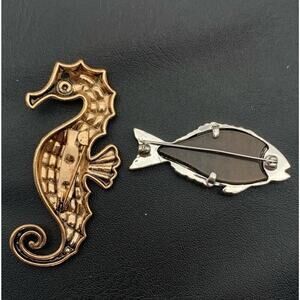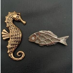 Lot Of 2 Fish Marine Life Brooches Seahorse And Fish Brooch