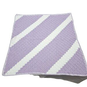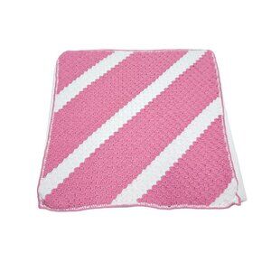 Lot Of 2 Handmade Crocheted Baby Blankets Diagonal Stripe 100% Acrylic Soft Cozy