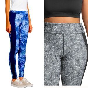 Lot Of 2 Lands End Active Hi Rise Compression Leggings Deep Sea Navy Palm & Paisley, side pockets
