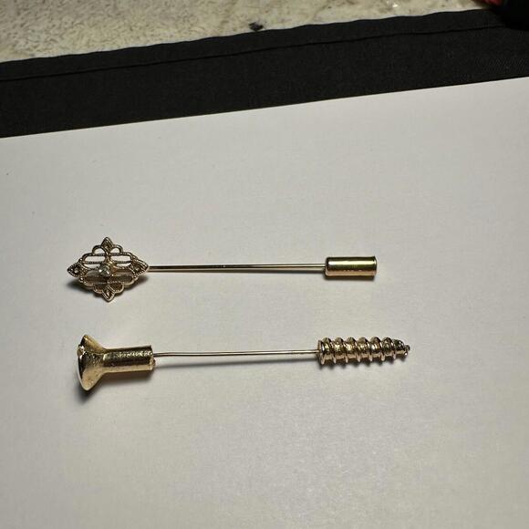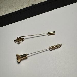 Lot Of 2 Lapel Stick Pin Gold Tone Metal 1 Screw Shaped