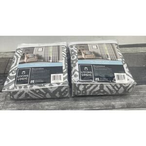 Lot Of 2 Living Logic Indy Gray/White Grommet Top Panel 50”W x 84”L. 953955 {K}.