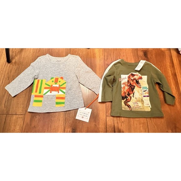 Lot Of 2 Long Sleeve Shirt Kids Dinosaur 12 Months Nwt