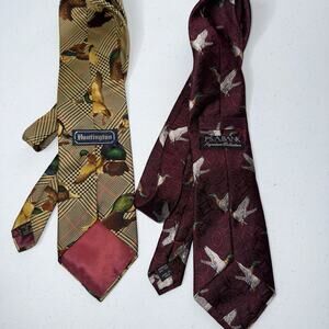 Lot Of 2 Men’s Mallard Duck Ties 100% Silk Jos A Bank Huntington