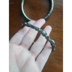 Lot Of 2 Metal Silver Pewter? Not sure what they are made of Bangles With Designs in good condition