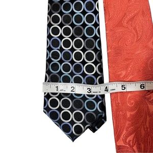 Lot Of 2 Michael Kors Silk Orange Infinity & Black Multicolor Circles Neck Ties