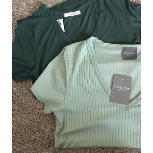 Lot Of 2 Olivia & Rae & Timing V Neck Green Short Sleeve Tee Tops Junior Small