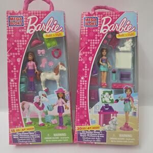 Lot Of 2 Rare Barbie Mega Bloks Mini Doll Figures & accessories 80237 + 80236