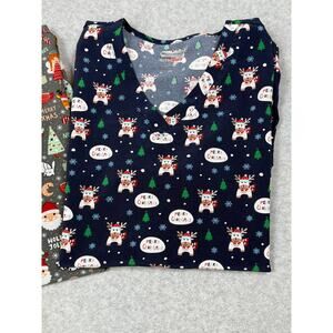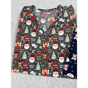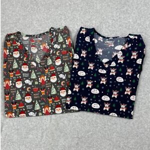 Lot Of 2 Scrubaid Womens Size L Christmas Print Scrub Tops