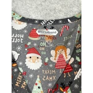 Lot Of 2 Scrubaid Womens Size L Christmas Print Scrub Tops. Good pre-owned condition